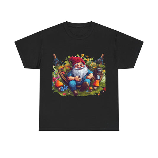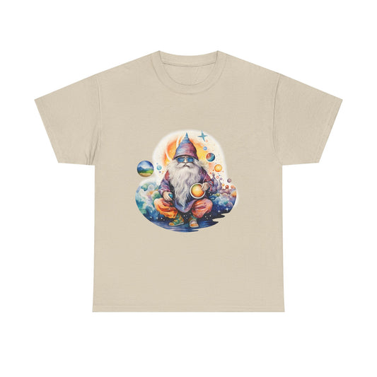 Cosmic Gnome Unisex Heavy Cotton Tee - Whimsical Space Design for Everyday Wear